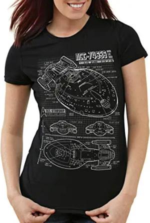 NCC-74656 Voyager T-Shirt Damen Trekkie Blaupause, Farbe:Schwarz, Größe:S