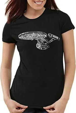 Spaceship T-Shirt Damen Trekkie Star, Farbe:Schwarz, Größe:M
