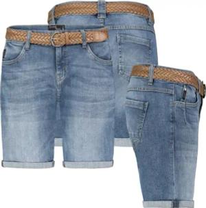 Damen Jeans Bermuda-Shorts mit Veloursleder Gürtel Light-Blue L