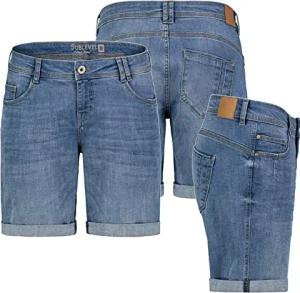 Damen Jeans Shorts Bermuda Kurze Hose Shorts Short Denim Stretch Denim, Farbe:Middle Blue, Größe:S 36