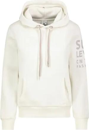 Damen Hoodie mit Kordelzug und Logo-Print auf der Brust, Farben:Weiß, Größe:S