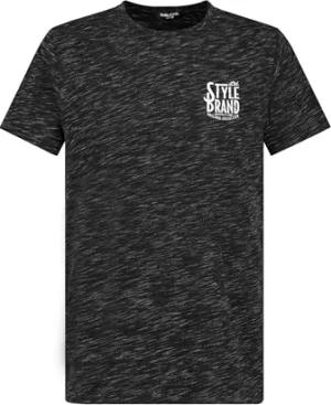 Meliertes Shirt mit Print Modern Rundhals Regular Fit, Farben:Schwarz, Größe:M