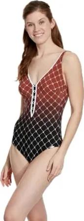 Badeanzug tiefer Rücken großer Cup mit Schalen Einteiler mit Raffungen figurfreundlich Klassisch Strandmode