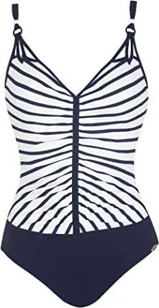Badeanzug Damen Badeanzug - klassischer Einteiler mit tiefen Rücken - große Cups mit Schalen - EIN Hingucker am Strand mit Streifen und maritimen Design