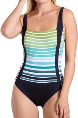 Badeanzug Damen Badeanzug - Einteiler mit Schalen und hohem Rücken - große Cups und verstellbare Träger - zweifarbig mit klassischen Streifen