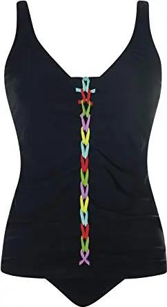 Tankini Damen Tankini mit Schalen und großen Cups - breiter Slip und verstellbare Träger - Zweiteiler mit Flechtung an der Vorderseite