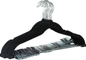 20er Set Kleiderbügel Hosenbügel mit Clips und Samt-Bezug Schwarz