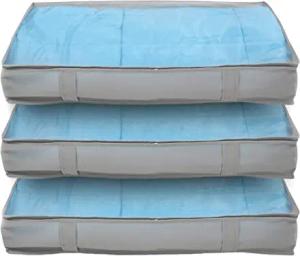 3er Set Aufbewahrungstasche M faltbare Unterbettkommode Griffe Reißverschluss Stoff Grau