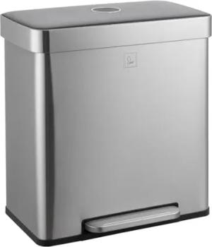 LT2X30 Mülleimer 60 Liter Treteimer Tretmülleimer Abfalleimer 2 Fächer je 30 Liter freistehend mit Deckel Softclose-Deckel inkl. Inneneimer Silber