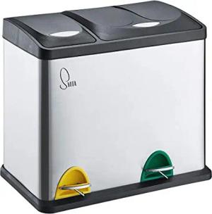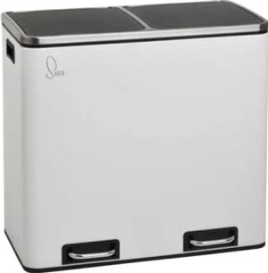 TM2X24 Treteimer 48 Liter Abfalleimer Mülleimer Design Mülltrennung Papierkorb Küchen-Ordnung Trennsystem Weiß