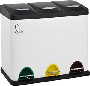TC3X8 Mülleimer 3 Fächer, 24 Liter Treteimer mit Tretmechanismus, Pulverbeschichteter Stahl, Pedale mit Farblicher Kennung, Herausnehmbare Inneneimer, Mülltrennsystem ideal für Bad und Küche