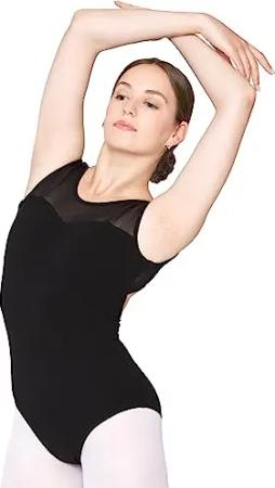 Ballett Trikot Damen ärmellos - Mary - Baumwolle - BH-Pad-Einschub - Netzeinsätze - schwarz 42 - schwarzer Tanz Body - Ballettkleidung für Erwachsene