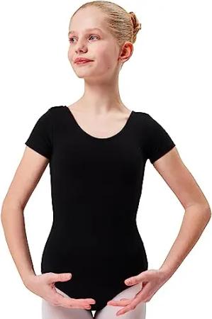 Ballettanzug Mädchen Kurzarm - Sally - aus weichem Baumwollstoff - Ballett Trikot Ballettbody in schwarz, Größe 104/110