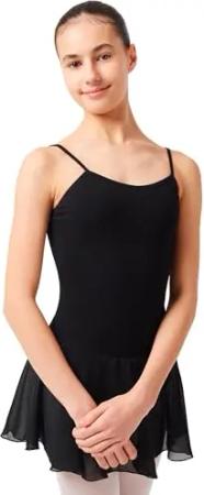 Ballettkleid Mädchen ärmellos - Maggie - aus weicher Baumwolle mit Chiffon Röckchen Ballettbody fürs Kinder Ballett in schwarz, Größe:116/122