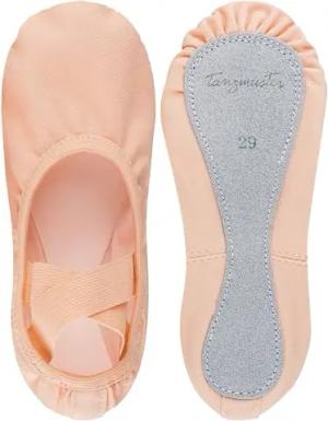 Ballettschuhe Mädchen - Terry - Satin - ganze Ledersohle - Ballettschläppchen für Kinder - Tanzschuhe fürs Ballett - rosa, 29