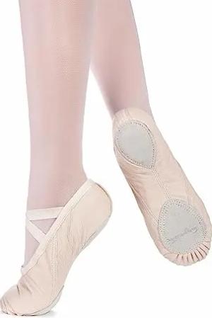Ballettschuhe Damen - Toni - Leder - Geteilte Ledersohle - Ballettschläppchen für Erwachsene - beige Tanzschuhe fürs Ballett, Sandfarben, 43
