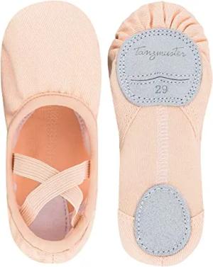 Ballettschuhe Mädchen Ballettschläppchen - Mika - Baumwoll-Stretcheinsatz, Geteilte Ledersohle, Rosa-Apricot, Größe 23