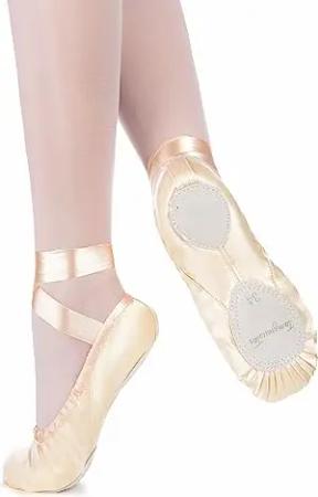 Ballettschuhe Mädchen - Sandy - Satin - Geteilte Ledersohle - Ballettschläppchen für Kinder - Tanzschuhe fürs Ballett - Champagner, 27