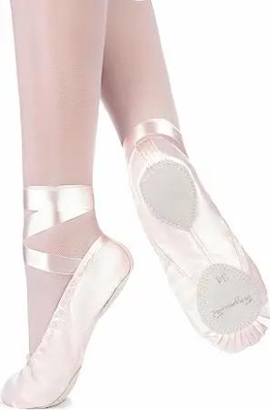 Ballettschuhe Mädchen - Sandy - Satin - Geteilte Ledersohle - Ballettschläppchen für Kinder - Tanzschuhe fürs Ballett - rosa, 25
