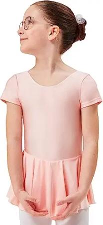 Kinder Kurzarm Ballett Trikot - Marina - mit Röckchen - glänzendes Lycra - Ballettkleid für Kinder hellrosa, Größe:164/170
