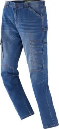 Herren Denim-Arbeitshose in sportlich schmaler Passform - Bundhose Jeans-Look mit vielen Taschen in Marine Größe 58