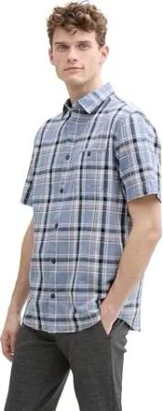 Fitted Kurzarmhemd aus Baumwolle, Dove Blue, XS