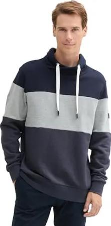 Herren Colourblock Sweatshirt mit hohem Kragen, 10668 - Sky Captain Blue, S