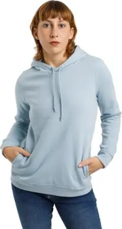 Damen Einfarbiger Hoodie aus Bio Baumwolle (Gr. XS-XXL) Sweatshirt enganliegende Passform mit Kapuze Langarm, Blue Fog, XS