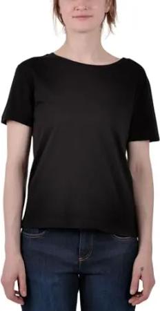 Damen Einfarbiges T-Shirt aus 100% Bio Baumwolle (Gr. XS-XXL) mit Rundhals Ausschnitt und kurzen Ärmeln in gerader Passform, Black, S