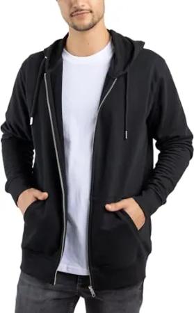 Herren Einfarbiger Zip Hoodie aus Bio Baumwolle (Gr. XS-XXL) Sweatjacke mit Kapuze Normale Passform, Black, XS