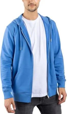 Herren Einfarbiger Zip Hoodie aus Bio Baumwolle (Gr. XS-XXL) Sweatjacke mit Kapuze Normale Passform, Bright Blue, XL