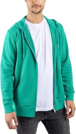 Herren Einfarbiger Zip Hoodie aus Bio Baumwolle (Gr. XS-XXL) Sweatjacke mit Kapuze Normale Passform, Go Green, L