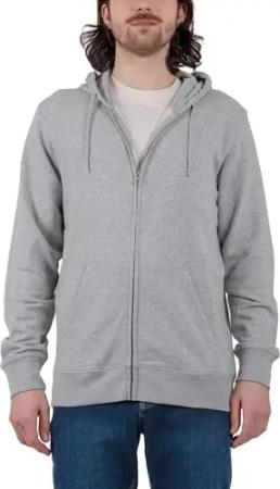 Herren Einfarbiger Zip Hoodie aus Bio Baumwolle (Gr. XS-XXL) Sweatjacke mit Kapuze Normale Passform, Heather Grey, XS