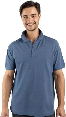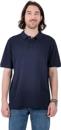 Herren Einfarbiges Poloshirt 100% Biobaumwolle (Gr. XS-XL) Polohemd mit Kragen Kurzarm aus, Dark Heather Blue, XS