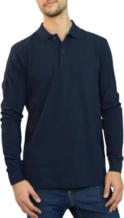 Herren Einfarbiges Poloshirt 100% Biobaumwolle (Gr. XS-XL) Polohemd mit Kragen Langarm, French Navy, XXL