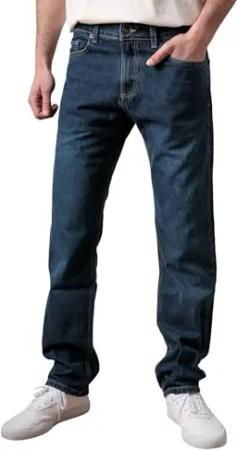 Herren Straight Fit Jeans aus 100% Bio Baumwolle normal geschnitten mit Mittelhohem Bund Medium Waist, Dark Indigo, 33W / 34L