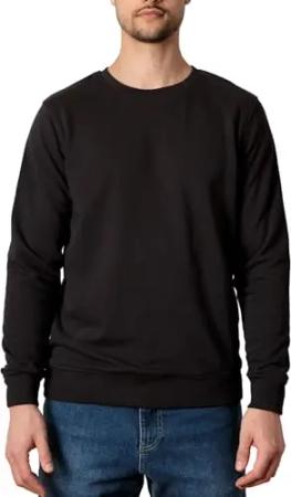 Herren Einfarbiger Pullover aus Bio Baumwolle (Gr. XS-3XL) Sweatshirt in lässiger Passform Langarm, Black, L