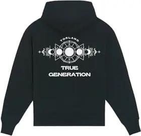Oversized Hoodie aus 100% Bio Baumwolle (Gr. S-XL) Sweatshirt mit Kapuze Langarm mit Front and Backprint aus schwerem Stoff Unisex, Black, S