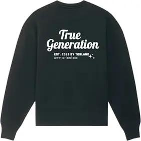 Oversized Pullover aus 100% Bio Baumwolle (Gr. S-XL) Sweatshirt Rundhals Langarm mit Front and Backprint aus schwerem Stoff Unisex, Black, S