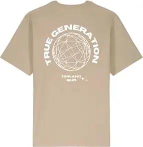 Oversized T-Shirt aus 100% Bio Baumwolle (Gr. S-XL) Rundhals Kurzarm mit Front and Backprint aus schwerem Stoff Unisex, Desert Dust, S