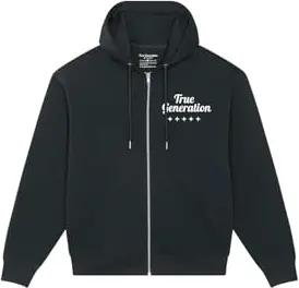 Oversized Zip Hoodie aus 100% Bio Baumwolle (Gr. S-XL) Zip Sweatshirt mit Kapuze Langarm mit Front and Backprint aus schwerem Stoff Unisex, Black, XL