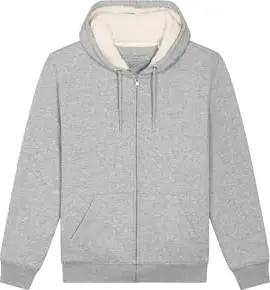 Sherpa Zip Hoodie aus Bio Baumwolle (Gr. XS-XXL) Sweatjacke mit Kapuze gefüttert Normale Passform für Damen und Herren, Heather Grey, M