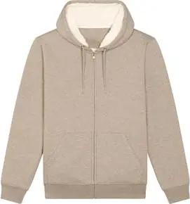Sherpa Zip Hoodie aus Bio Baumwolle (Gr. XS-XXL) Sweatjacke mit Kapuze gefüttert Normale Passform für Damen und Herren, Heather Sand, S