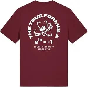 T-Shirt mit Euler Formel aus 100% Bio Baumwolle (Gr. S-XL) Rundhals Kurzarm mit Front and Backprint, Burgundy, L