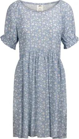 Damenkleid Margaret – kurze Länge, Allover-Print, kurze Ärmel, Raffung am Rückenteil, 100 % Viskose, Cooler blauer Druck, 40