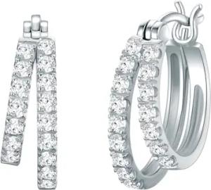 Damen Creolen aus 925/- Sterling Silber rhodiniert mit Zirkonia Silberohrcreolen