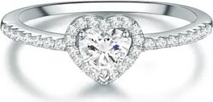 Damen Ring aus 925/- Sterling Silber rhodiniert mit Zirkonia weiß Diamantschliff Solitärring Herz