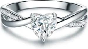 Damen Herz-Solitärring aus 925 Sterling Silber mit Zirkonia im Brilliantschliff Herzform Verlobungsring Antragsring Silberring in Wickeloptik