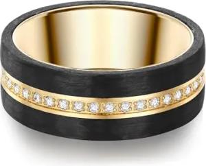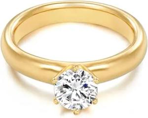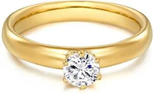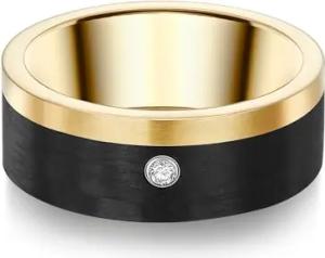 Damen-Ring Edelstahl gelbvergoldet Zirkonia weiß Brillantschliff - Edelstahlring vergoldet Carbon Verlobunsgring Ehering Partnerring