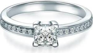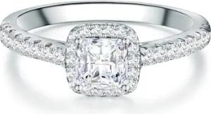 Damen Verlobungsring 925/- Sterling Silber mit Zirkonia im Brilliantschliff Solitärring Eckig Antragsring